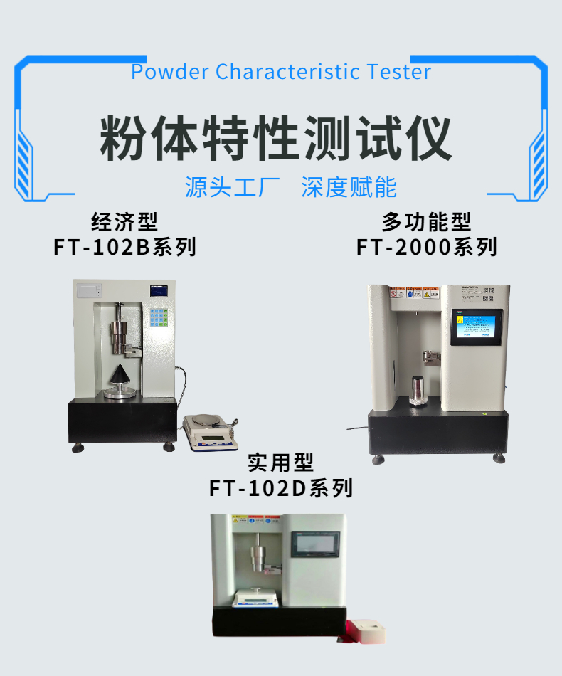 粉末流動性測試儀是評價粉體流動性的儀器統稱,粉末流動性的測試方法有多種,比如:綜合性的卡爾指數法,剪切法,旋轉圓筒法,單軸壓縮法,以及簡易休止角,流速測試,豪斯納比(振實密度與松裝密度獲得)的單項評定方法;這些方法需要根據實際粉體特性選擇使用.