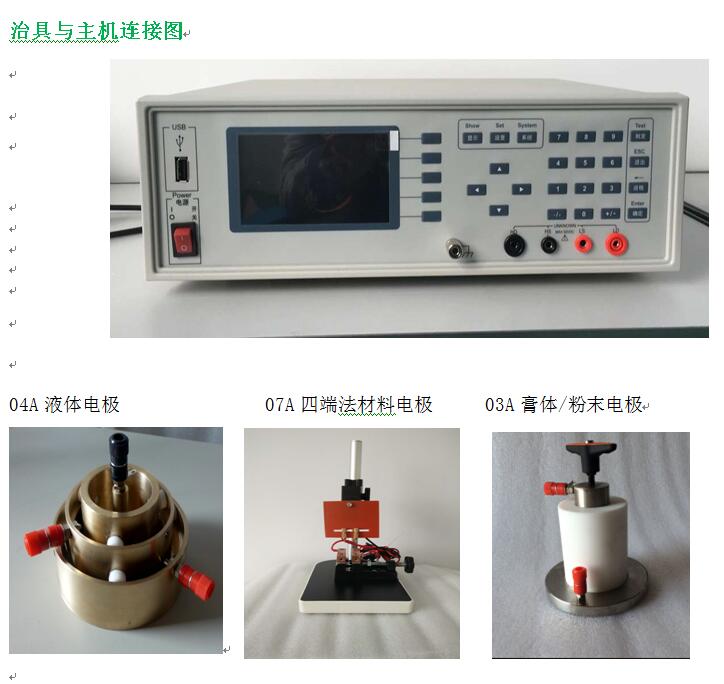 3. 將測試線與主機(jī)、夾具如下圖連接好.
