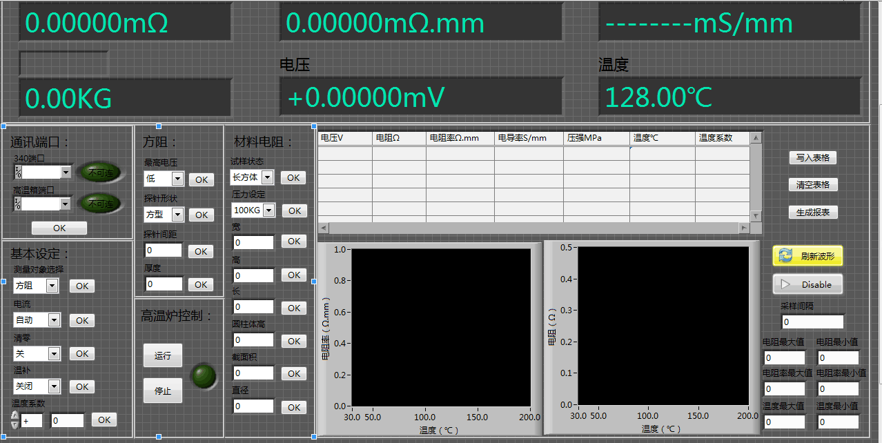 2、PC軟件顯示界面:電阻率、溫度、電流,電壓、樣品數據;單位可以切換resistivity. temperature. current voltage. input test sample data; unit can be switched