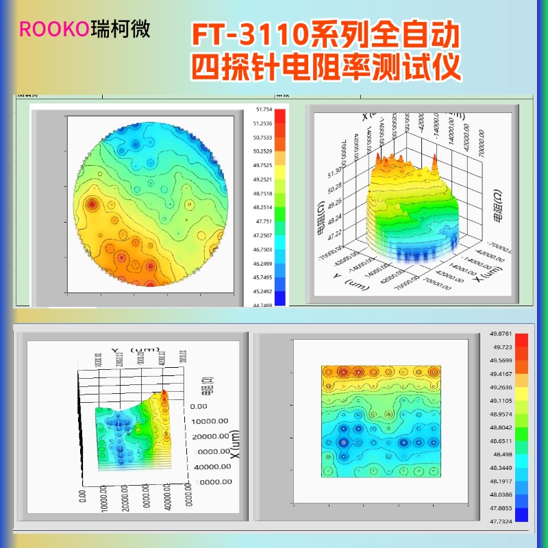 3. PC軟件分析:配套分析軟件,可實時顯示電阻、電阻率、電導率、溫濕度等數據,支持2D/3D掃描圖譜生成、數據統計分析與測試報表導出。